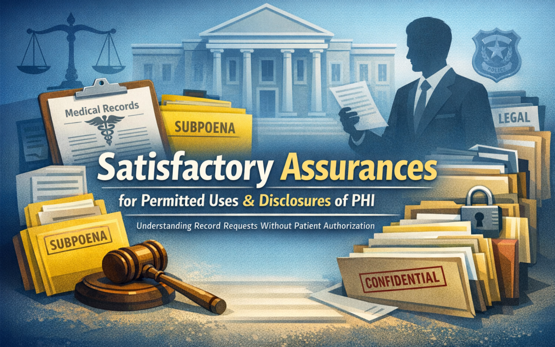 In Part 1 of this series, we explored the release of records when attorneys request them. In this second installment, we dive deeper into scenarios where your clinic may receive requests for medical records without patient authorization. These situations often involve attorneys seeking protected health information (PHI), which is governed by the HIPAA Privacy Rule (45 CFR Part 164). Under this rule, attorneys must provide “satisfactory assurances” to covered entities before disclosing PHI when the patient has not provided a HIPAA-compliant authorization.